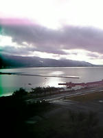 宿から見た朝の諏訪湖。