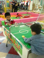 最近子供向けの小さいエアホッケーが好きみたいで、行くといつもやってます。